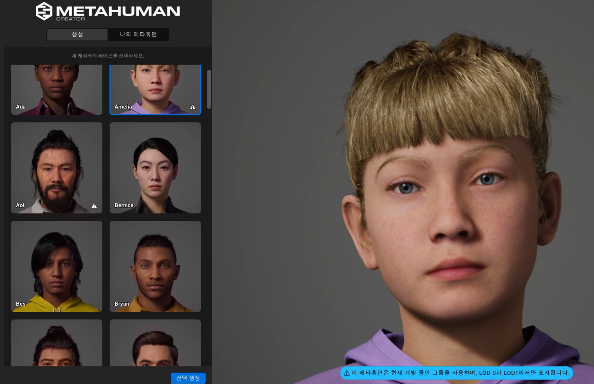 캐릭터를 선택해서 선택 생성을 할 수 있게 되어있다.