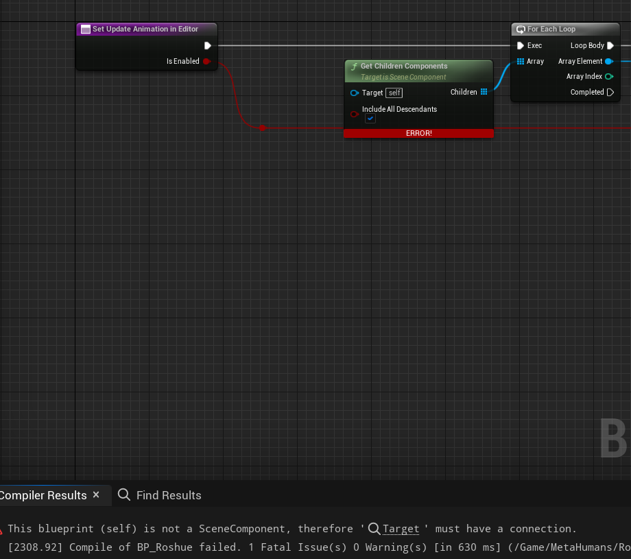 여기서 타겟에대한 에러를 뱉어낸다. 이 때 Target은 새로 추가한 Skeletal Mesh를 연결해주면 해결된다.
