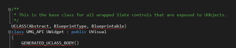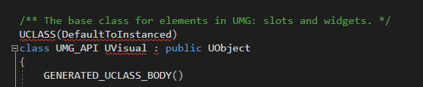 UVisual은 UMG 요소들의 베이스가 되는 클래스라는 주석이 쓰여져있다.