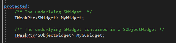 SWidget을 참조하고 있다는 사실을 확인할 수 있다. 그리고 UWidget의 기능을 통해 TWeakPtr을 SharedPtr로 변환해서 상속받은 자식 클래스들이 요긴하게 사용할 것이다.