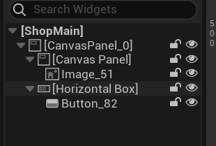 다른 것을 명확하게 보여주기 위해서 Image하나를 CanvasPanel의 자식으로, Button 하나를 Horizontal Box 자식으로 넣어보겠다.