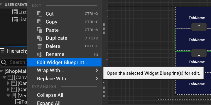 EntryWidgetClass 라는 것을 설정하도록 되어있다. 이걸 위해서 따로 UserWidget으로 아이템을 만들고, 그 내부에서 몇 가지 세팅을 해주어야한다.