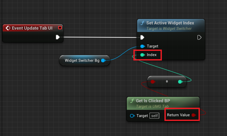 GetIsClickedBP의 return value와 SetActiveWidgetIndex의 Index를 연결하면 자동으로 컨버팅되어 연결될 것이다.