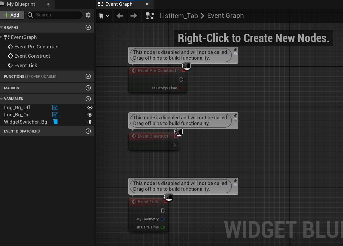 부모 클래스가 UMG Tab으로 잘 연동된 것을 볼 수 있다. 이제 Graph에서 UI 작업을 해보자