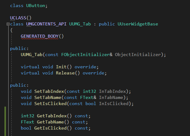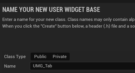 UserWidgetBase를 상속받은 UMG_Tab c++ 클래스를 만들자.