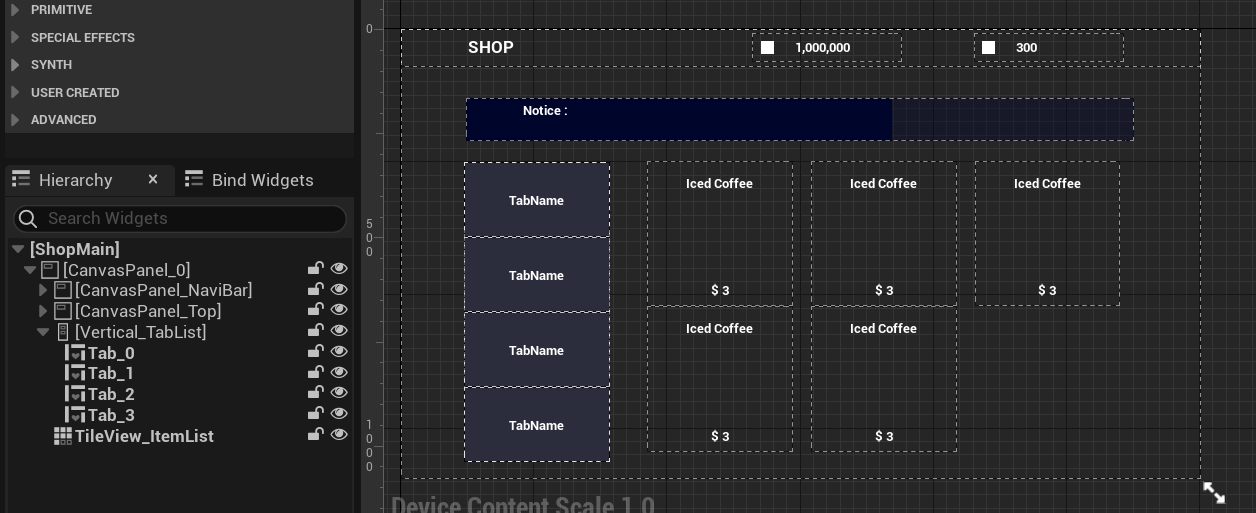 이걸 확인하기 위해서는 Shop UMG가 모두 적용 되어야 한다. 그리고 또 한가지는 TabName을 설정하는 것인데 빈번하게 TabName을 변경하게 될 것 같아 이부분은 코드로 작업을 할까 고민하고 있다.