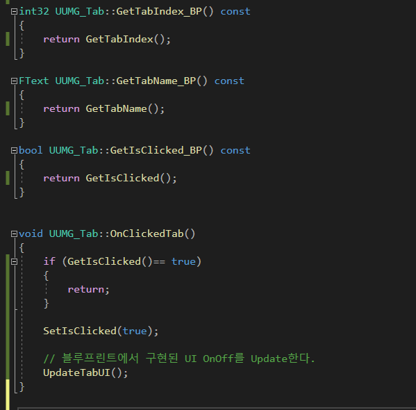 UMG_Tab C++에서는 아래와 같은 함수를 만들어서 사용한다.