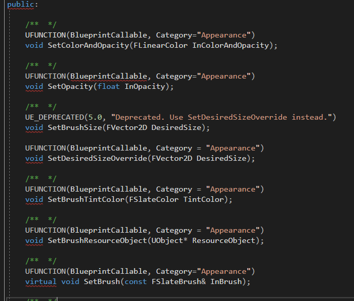 내가 여기서 Brush를 변경하거나(sprite같은 걸 넣을 수 있다.) Color and Opacity에 변화를 주게되면 UImage는 그걸 감지하고, SImage라는 Slate위젯에 변화된 내용만 업데이트 해주는것이다.