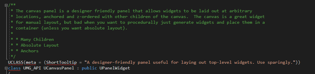 CanvasPanel은 UWidget을 바로 상속받은 것이 아니라 UPanelWidget이라는 클래스를 상속받고 있다.