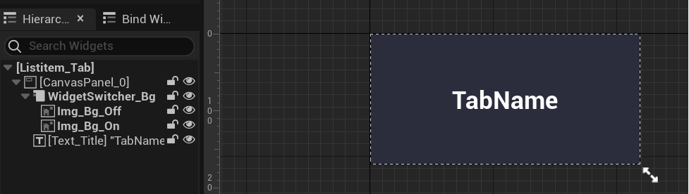여기에서는 WidgetSwitcher라는 것을 넣어주었다. 주로 게임을 할 때 탭을 하나 누르면 다른 탭은 선택되지 않은 상태를 보여주고, 선택된 탭은 조금 더 하이라이트 되어있는 것을 볼 수 있는데, 여기서 On이면 현재의 파란색, Off면 회색을 보여주기 위해 이미지를 두 개 넣어두었다. 위젯 스위처에는 위젯스위처만의 기능이 있는데 index 번호를 넣어주면 그 인덱스에 존재하는 위젯만 보여준다.